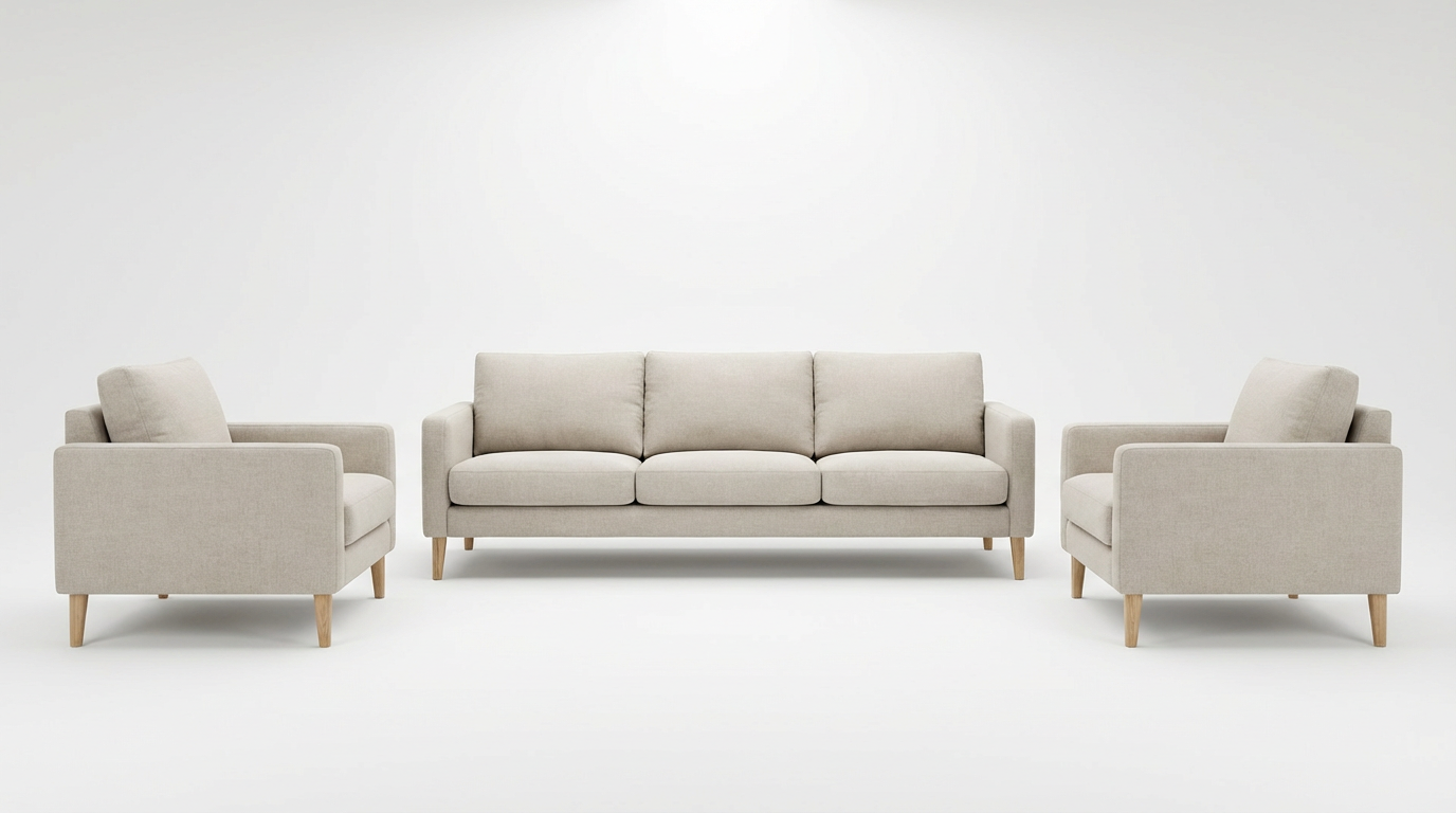 Bring home the perfect blend of simplicity, luxury, and comfort with the Nordic Cloud 3-Piece Sofa Set. Designed with clean Scandinavian lines and upholstered in a premium soft-beige fabric, this set elevates the look of any living room with its elegant minimalism.